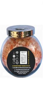 It is presented in glass grinder. Himalayan salt is also known as pink rock salt because of its distinctive pale pink color. It comes from a mine in Pakistan, the high mountains in Himalaya. It was originally formed from marine fossil deposits over 250 million years ago during the Jurassic era. It’s a natural salt rich in a number of minerals (84 elements). This is why many people assume it has numerous health benefits. They are all beneficial because it’s an unrefined salt. Along with sodium, Himalayan salt has high quantities of phosphorus, calcium, potassium, iron, magnesium, zinc, selenium, copper, bromine, zirconium and iodine.